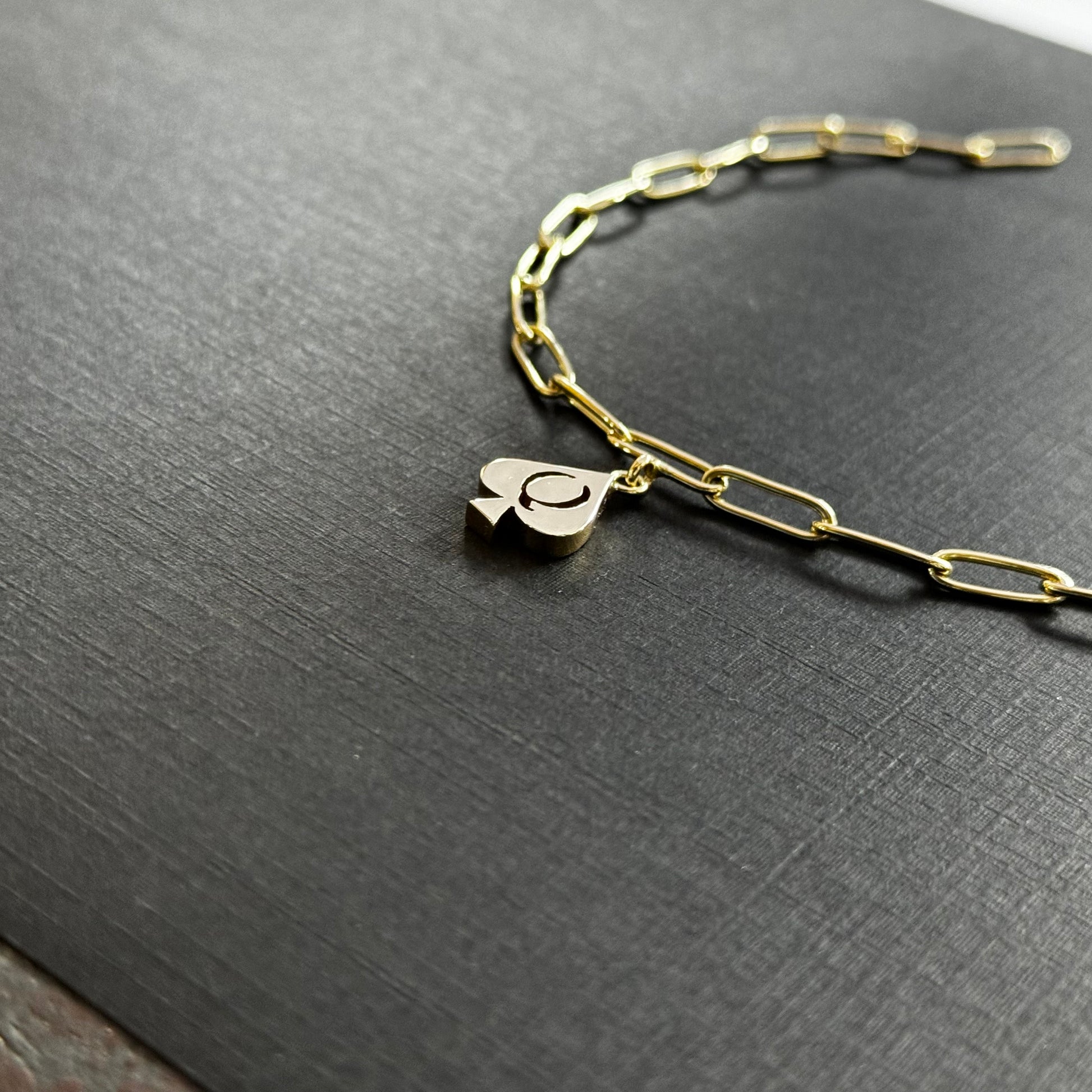 A handmade 14 carat yellow gold charm chain with solid 1 mm thick shackles. Completely handcrafted! Choose in the personalize area the lengt of the charm for a bracelet or anklet and choose the pendants you prefer!